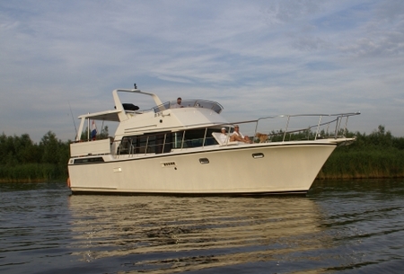 | Ca. 13,5m x 4,5m, Tiefgang: 1,2m, Baujahr: 1986, 2 x 306PS Volvo Penta TAMD70E Diesel (6 Zyl.), 3 x 2 Schlafplätze, Bugstrahlruder, Achterkajüte, Material: GFK, Code: H |