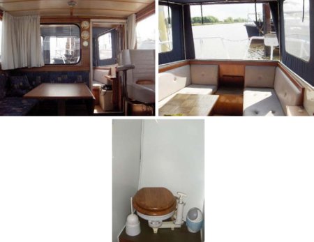 | Ca. 10,5m x 3,5m, Tiefgang: 1m, Baujahr: 1975, 84PS DAF 475 Diesel (6 Zyl.), 3 Schlafplätze, 2. Steuerstand, Mahagoniausbau, Material: Stahl, Code: H |